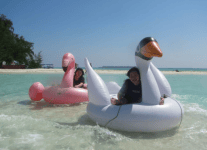 Karimunjawa merupakan destinasi wisata di jawa tengah yang terkenal dengan alamnya, terutama pantai dan terumbuh karangnya. Maka tak heran ketika wisatawan berkunjung ke karimunjawa biasanya menanyakan spot yang bagus yang ada di karimunjawa. Memang terdapat banyak spot bagus di karimunjawa yang bisa kita kunjungi, tapi selain untuk snorkeling Nautika Karimunjawa menyediakan beberapa fasilitas menarik yang bisa dinikmati di semua kalangan, seperti aneka floaties, hammock, dan fasilitas lainnya. Fasilitas seperti ini bisa dinikmati ketika lagi di pantai atau pulau. Biasanya bagi wisatawan yang membawa keluarga suka dengan fasilitas ini terutama floaties ( flamingo ) yang mana bisa digunakan untuk mainan anak anak atau bahkan orang dewasa yang suka berfoto. Selain itu, mainan floaties ini sangatlah cocok bagi wisatawan yang lagi honeymoon atau bulan madu di Karimunjawa, karna biasanya butuh momen yang pas untuk liburan, seperti berfoto dengan flamingo serta memberi kesan keromantisan terhadap pasangan tersebut. Dan untuk hammock sendiri biasanya digunakan untuk tempat istirahat atau bersantai ketika lagi di pulau atau pantai sambil menunngu makan siang bbq siap di hidangkan.